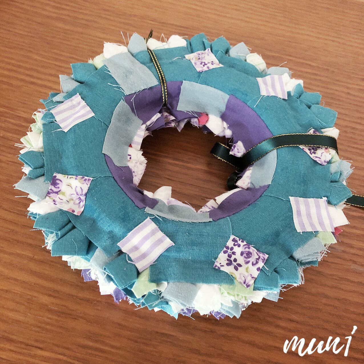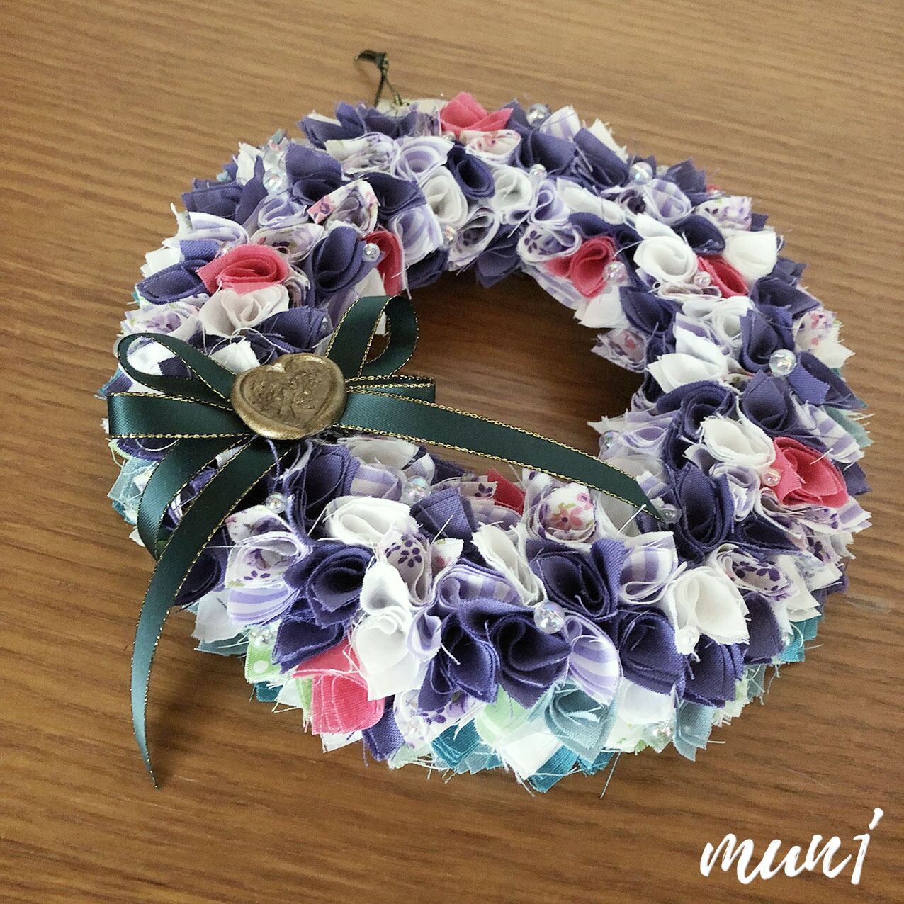 パープルメインの布リースです。