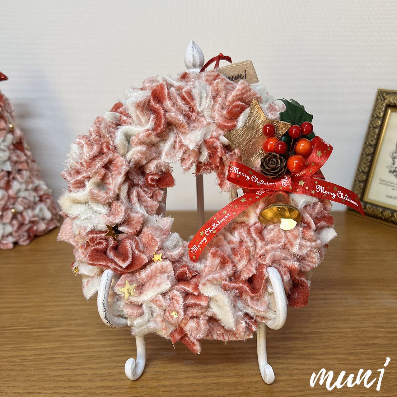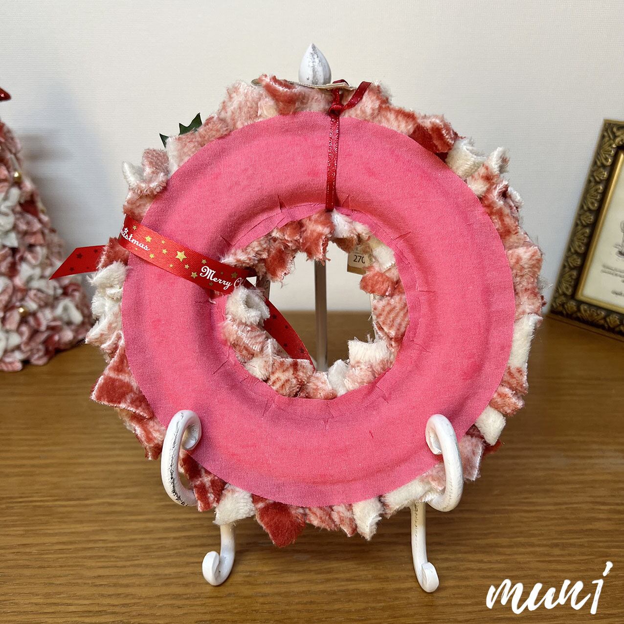 リース素材:布、ボールピック、ベル、コルク、松ぼっくり、リボン