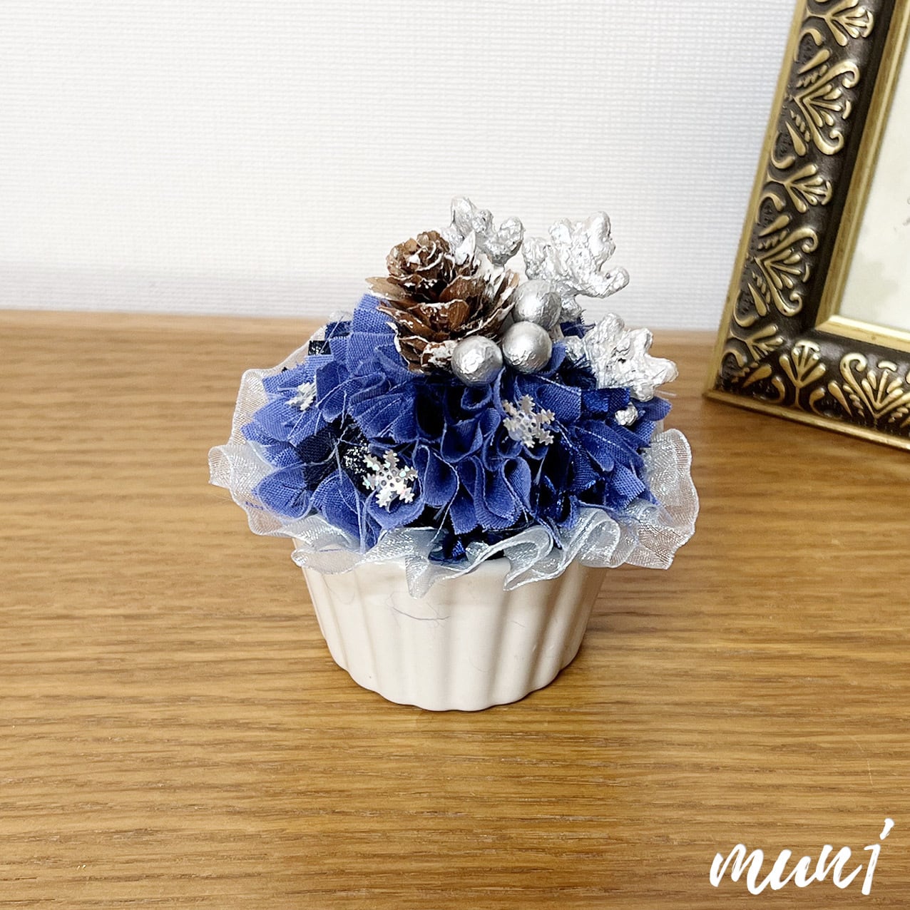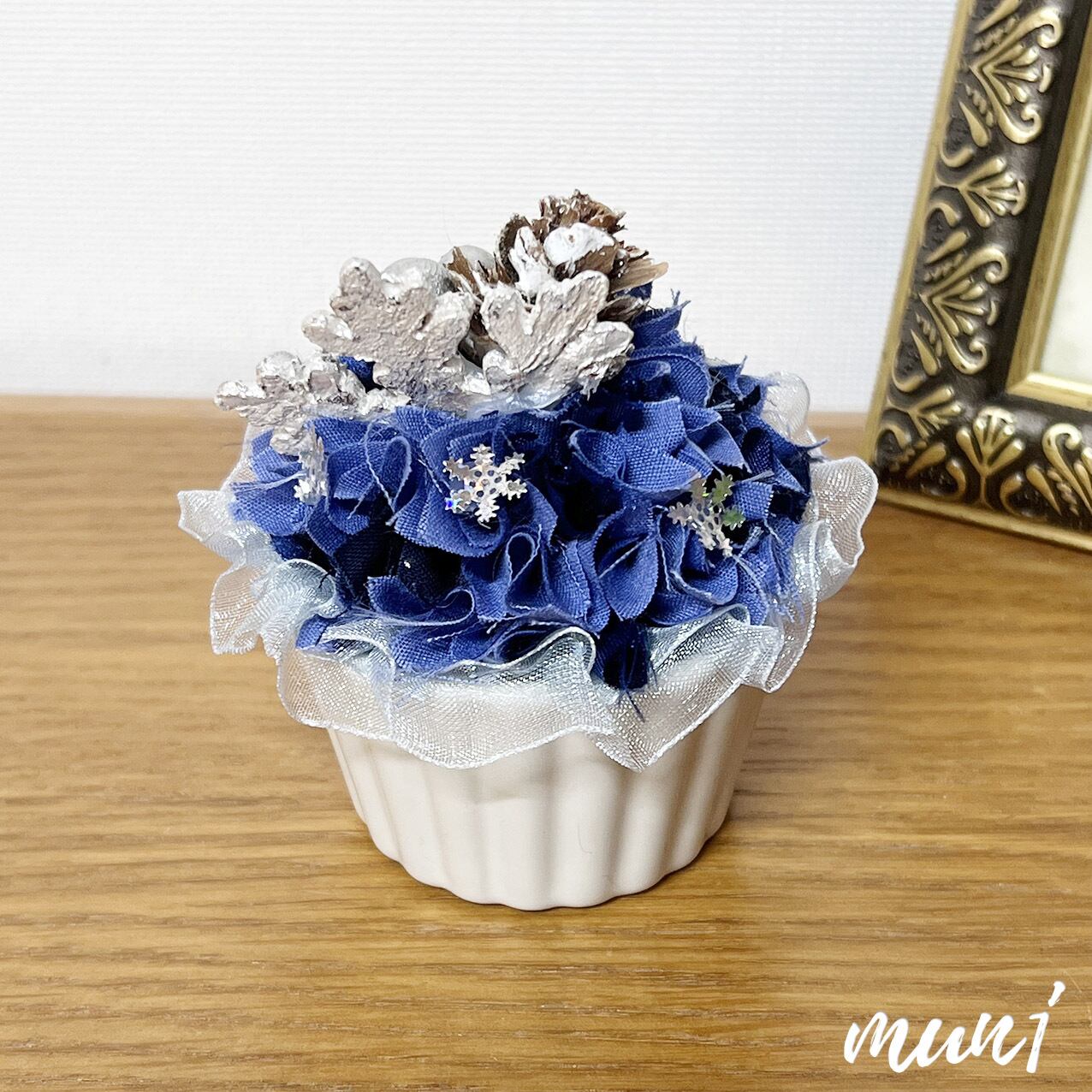 カップケーキみたいな布リースのミニカップアレンジメントです。