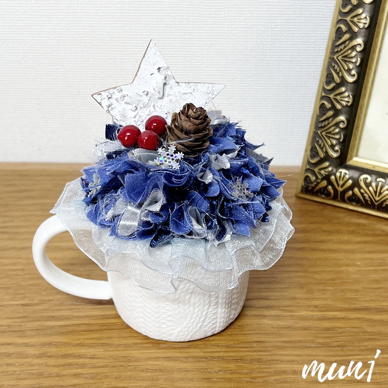 カップケーキみたいな布リースのミニカップアレンジメントです。